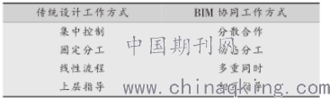 传统设计工作方式与BIM协同工作方式对比见表1。