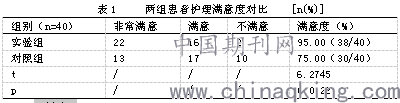 采用问卷调查的方式对比两组患者对于护理工作的满意度[2]。